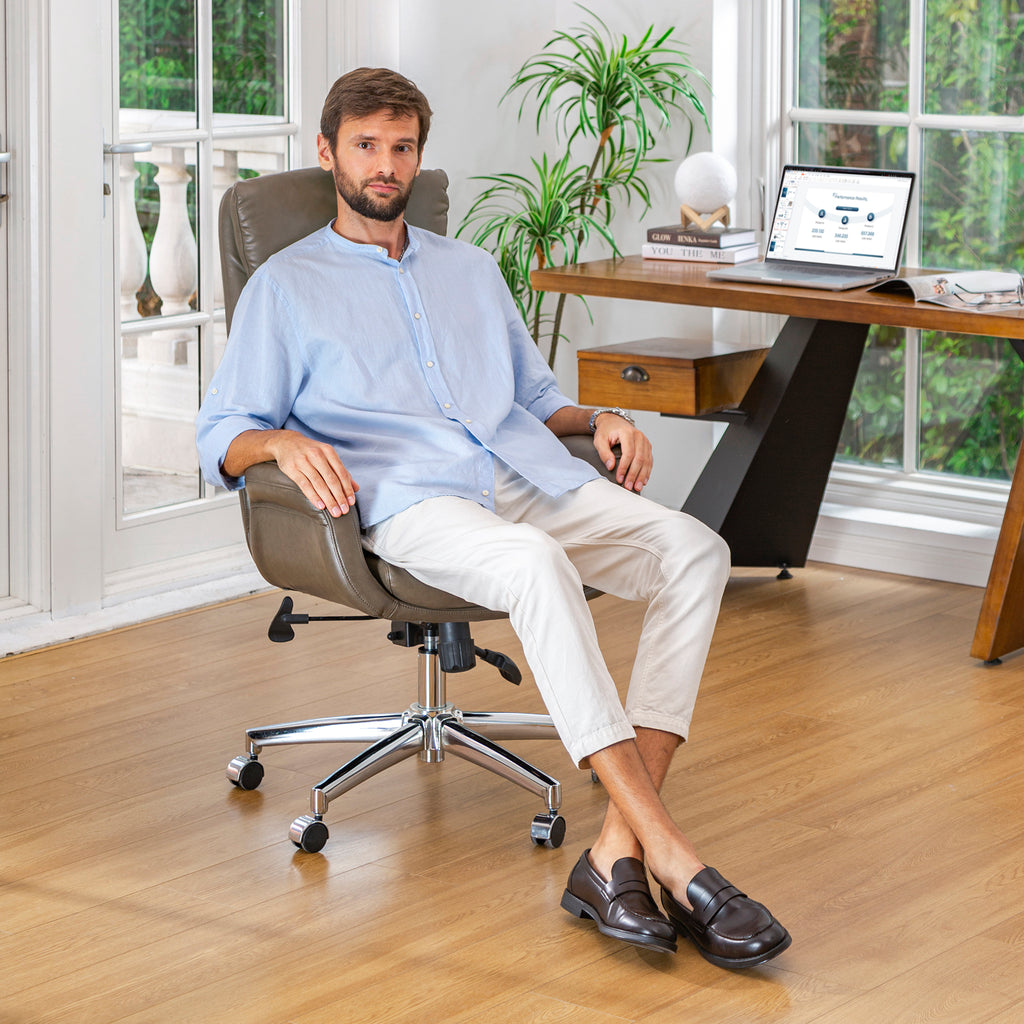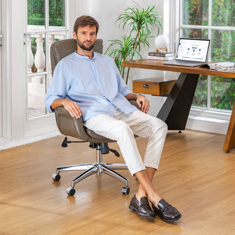 Glitzhome Mid-Century Modern Brownish Grey Leatherette Gaslift Adjustable Swivel High Back Office Chair